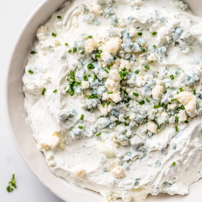 - Spoon the dip into a wide shallow bowl. Smooth the surface and sprinkle with extra blue cheese and herbs. For a festive touch add edible glitter or sugar pearls.
