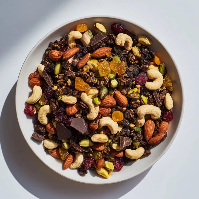 - Crunch & Sweet: ¾ cup dark chocolate chunks (or chips), 1 cup whole grain granola clusters (gluten-free if needed), ¼ cup coconut flakes (unsweetened)