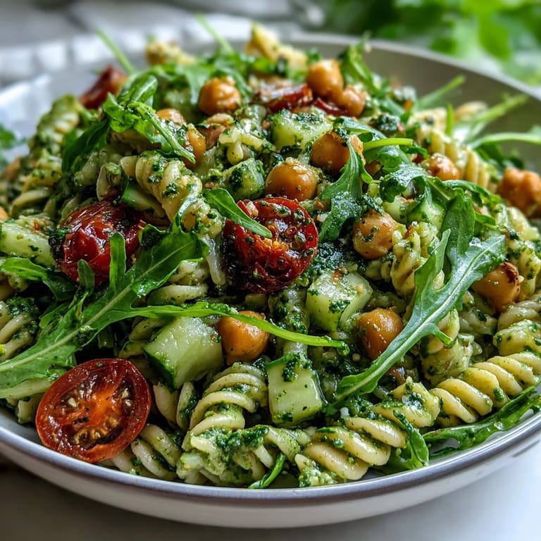 Save A friend showed up to my apartment one summer afternoon with a container of homemade pesto, and I realized I'd been overthinking plant-based cooking for months. We tossed it with some pasta I had lying around, threw in a can of chickpeas, and suddenly lunch became this bright, satisfying thing that didn't feel like we were being careful about anything. That afternoon taught me that creamy vegan pesto doesn't need dairy to taste like velvet, and now this pasta salad is what I make when I want something that feels both nourishing and joyful.