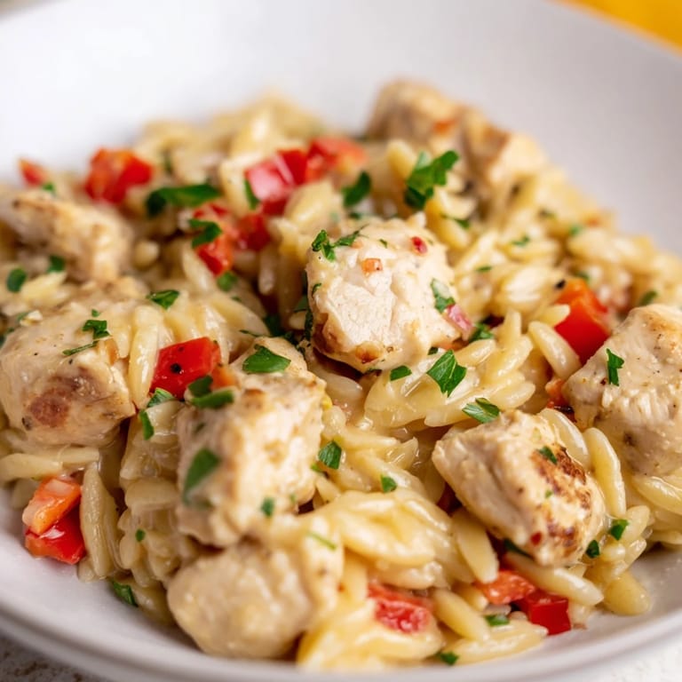 Save A creamy, spicy, and comforting one-pot meal combining tender chicken, smoky Cajun spices, velvety Alfredo sauce, and orzo pasta for a quick weeknight dinner.