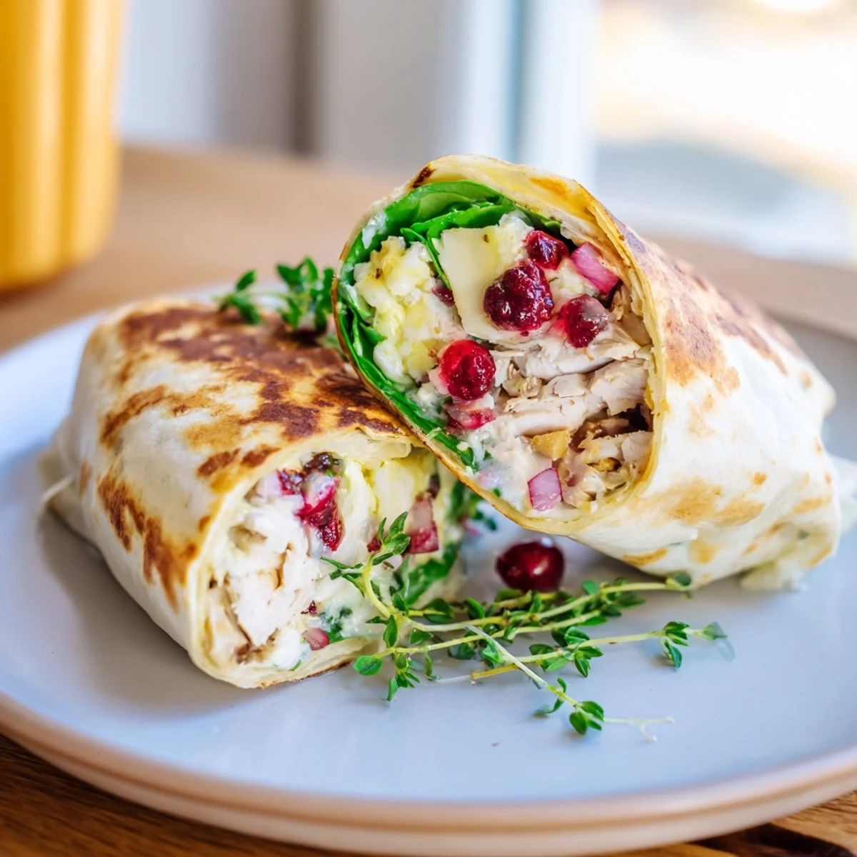 On its own, this wrap is satisfying, but I've learned that serving it alongside something cool and bright makes the whole experience feel more complete. A simple side salad with a sharp vinaigrette, or even just some pickled vegetables, cuts through the richness and makes you feel like you've eaten a proper dinner instead of just a wrap. And if you're pairing it with a drink, skip the coffee and reach for something like a crisp Pinot Noir or sparkling apple cider—the slight sweetness and bubbles echo the cranberry sauce in the most pleasant way.