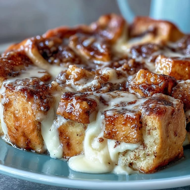 This indulgent overnight breakfast casserole combines the best of cinnamon rolls and French toast. Thick cubes of brioche or challah soak in a spiced custard infused with mashed bananas for natural sweetness. Rich cream cheese swirls are marbled throughout, creating pockets of velvety goodness in every bite. A buttery cinnamon-sugar topping caramelizes beautifully while baking, forming a crisp, golden crust. The make-ahead nature means you can prep everything the night before and simply pop it in the oven come morning.