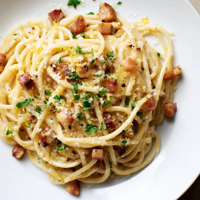 Save There's something about the smell of bacon hitting hot oil that makes you stop whatever you're doing and just breathe it in. I stumbled onto this linguine one weeknight when I had bacon, pasta, and exactly twenty minutes before dinner needed to be on the table. No cream in the pantry, no fancy ingredients—just the realization that pasta water itself could do all the heavy lifting, turning something simple into something silky and satisfying.