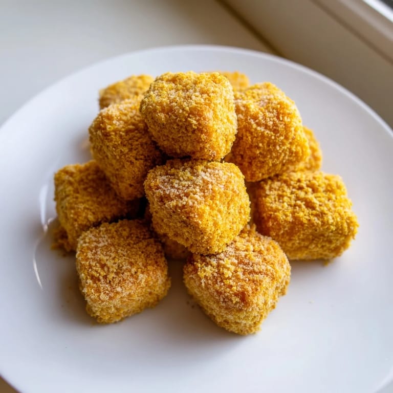 The magic in these nuggets isn't really the tofu itself—it's the coating and how it interacts with heat. I've tried every variation of breading: breadcrumb blends, air frying, oven baking, and double-dipping. Each method has its charm, but the shallow frying method here creates an almost supernatural crispness that makes people pause and take notice. The panko is essential because those larger crumbs create actual texture and crunch rather than the thin, papery crust you get with regular breadcrumbs.