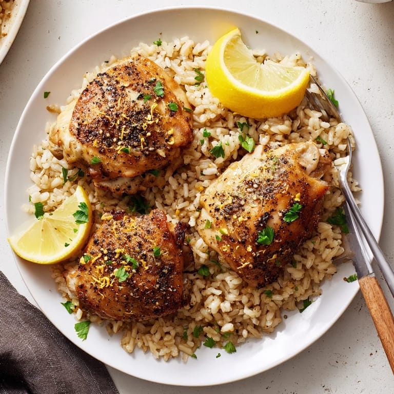 Save Succulent chicken breasts seasoned with zesty lemon and cracked black pepper are served over fluffy rice for a bright comforting meal. This dish offers a harmonious blend of fresh citrus and aromatic spices making it a family favorite any night of the week.