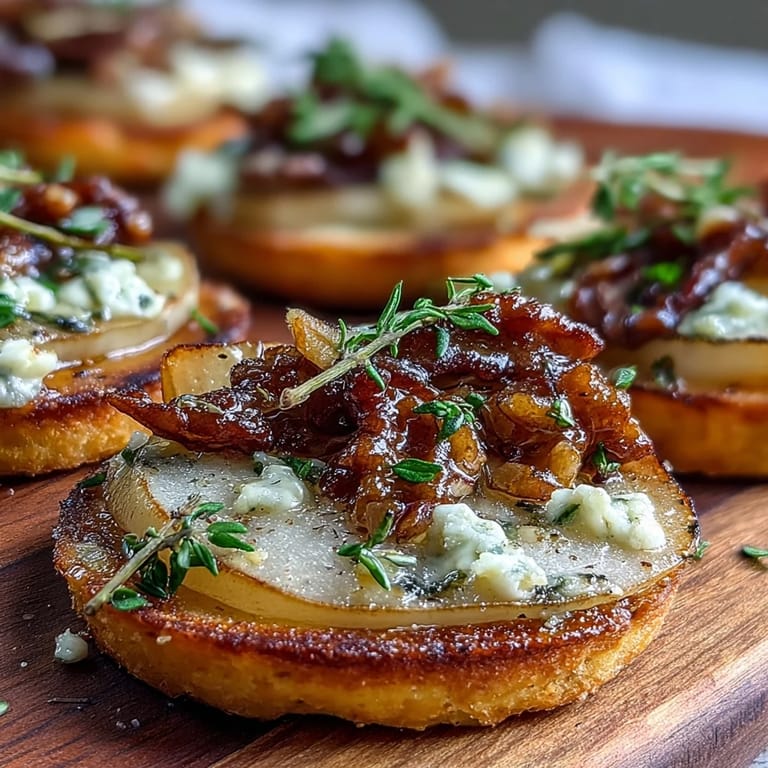 The contrast of textures is what makes these pizzettes truly special. The soft, bubbling cheese melts into the tender pear slices, while the pickled walnuts add a surprising crunch and complexity that will leave your guests impressed.