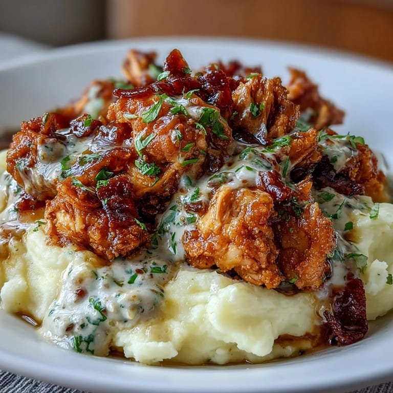 For the best results, don't skip the pepperoncini juice—it's the secret ingredient that adds incredible depth and tanginess to the sauce. When shredding the chicken, make sure to mix it thoroughly with the cooking liquid so every bite is infused with flavor. If your mashed potatoes seem too thick, add warm milk a tablespoon at a time until you reach your desired consistency. For an extra-smooth texture, use a potato ricer instead of a masher. The garlic cloves will become soft and mellow after boiling with the potatoes, adding a subtle, sweet garlic flavor throughout.