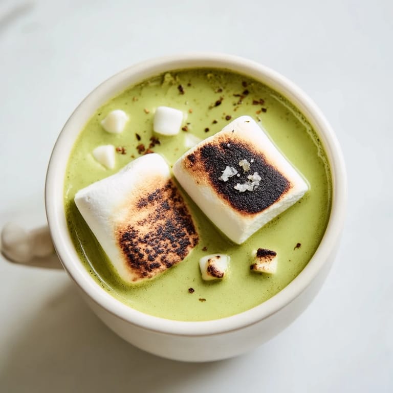 This warm beverage combines creamy cocoa and earthy matcha for a unique layered flavor. Toasted marshmallows add a smoky sweetness, enhancing its comforting nature. The preparation involves gently heating milk, cream, cocoa, and chocolate until smooth, then whisking in frothy matcha. Toasted marshmallows crown the top, providing a nostalgic campfire touch perfect for chilly evenings or cozy gatherings.
