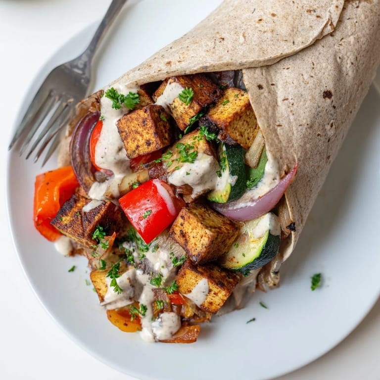 - Warm wraps or pita breads. Fill each with roasted tofu and vegetables. Drizzle tahini-yogurt sauce and sprinkle with fresh parsley.